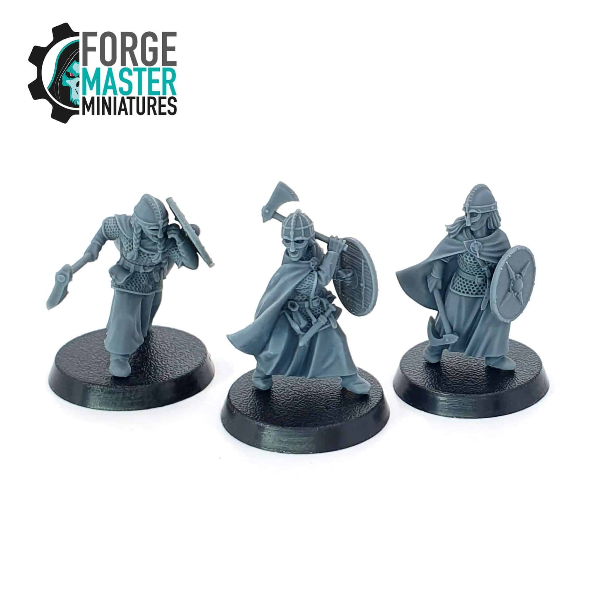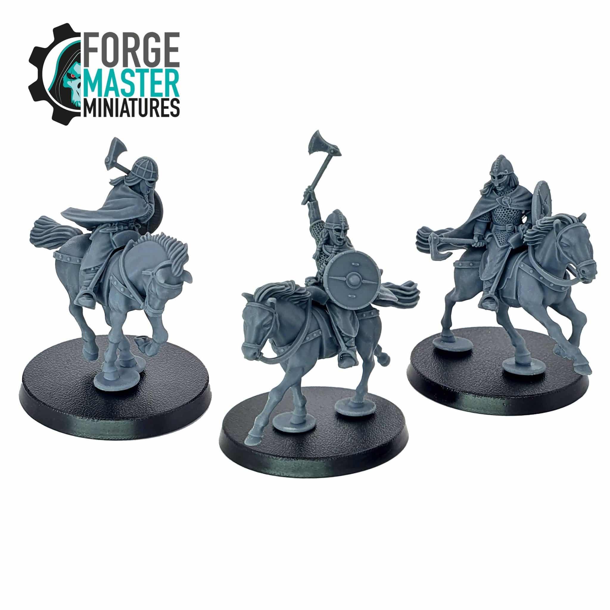 This resin kit contains 12 components which make 6 miniatures: three Shield-maidens of Hengstland Bundle on foot and three Shield-maidens of Hengstland Bundle mounted.